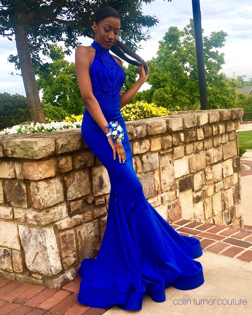 “MAKAILA V2” COUTURE GOLD BLUE SEQUIN PEPLUM GOWN