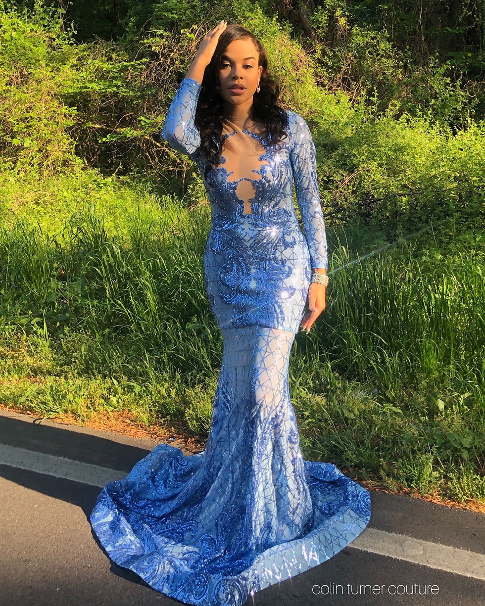 “ADONNA” COUTURE SEQUIN EXTENDED TRAIN GOWN (SEQUIN PATTERN MAY VARY)
